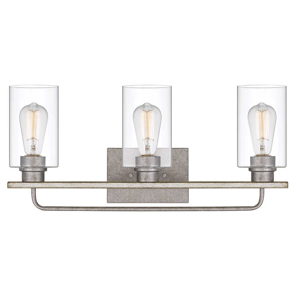 NEMO 3-LIGHT GALVANIZED & ANTIQUE WHITE WASH WOOD VANITY LIGHT 5.75� X22�X 9.63�